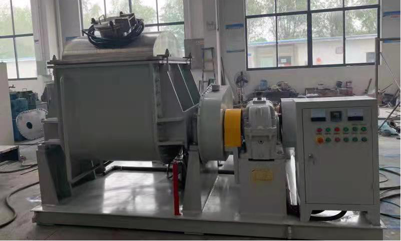 2 帶夾套及液體管路W形捏合斗,Z型(西格瑪型)雙捏合輥,液壓翻缸上出料,液壓翻蓋。